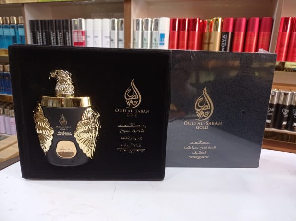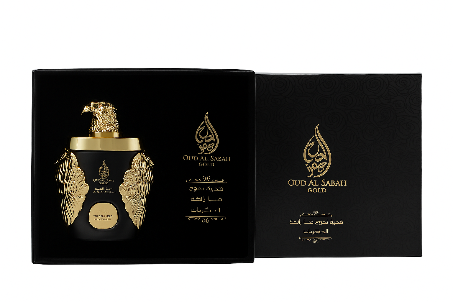 Oud Al-Sabah Gold – A luxurious perfume that blends the richness of oud with a touch of elegance. Encased in a majestic eagle-inspired bottle, this long-lasting fragrance exudes power, sophistication, and timeless Arabian charm.